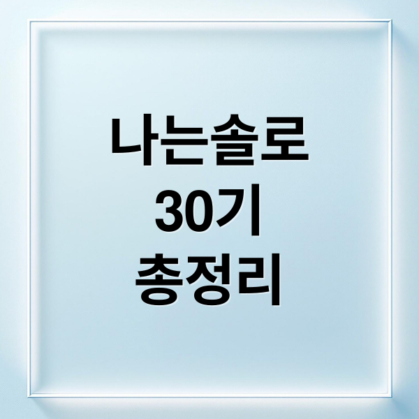 나는 솔로 30기 총정리: 출연자 프로필, 논란, 최종 선택 결과